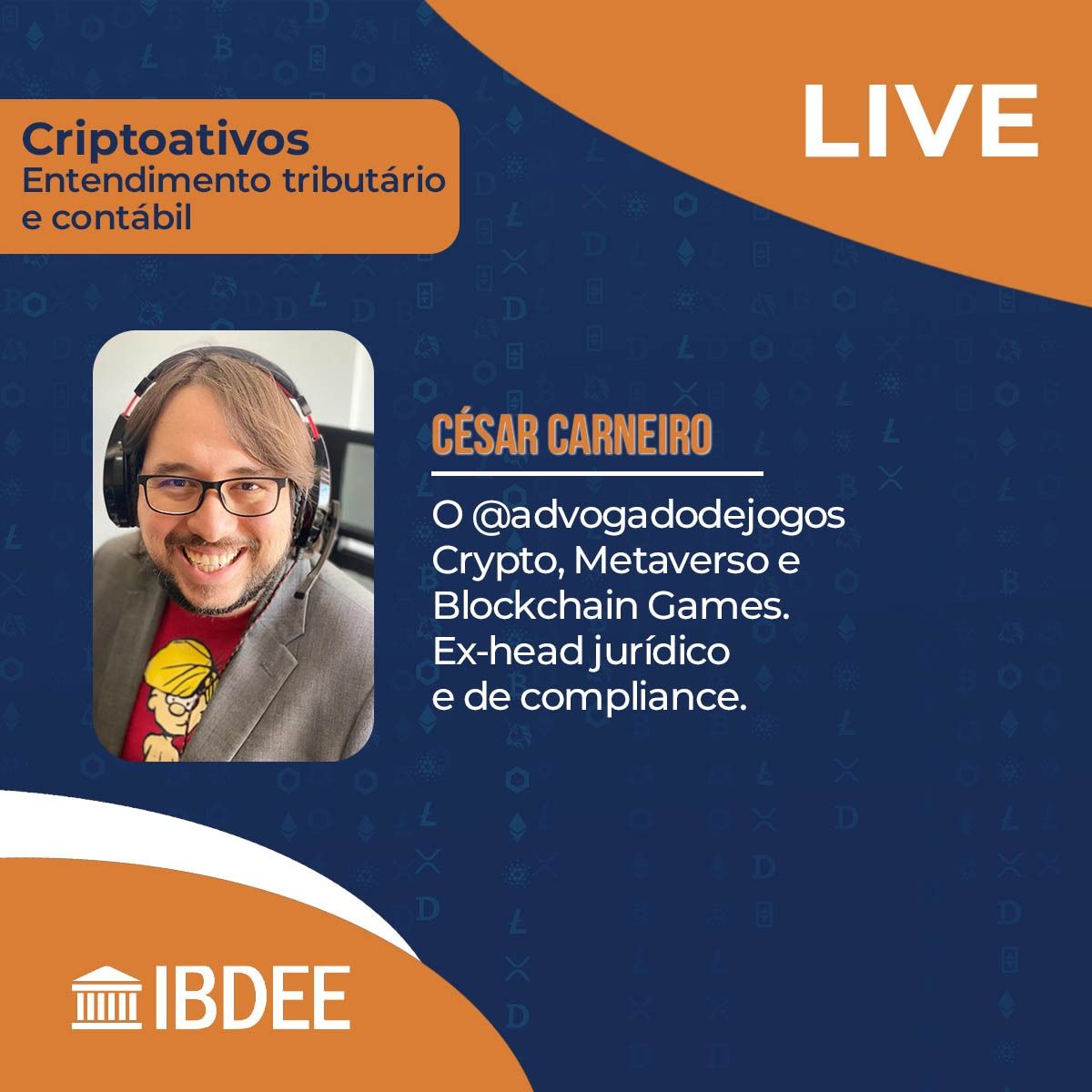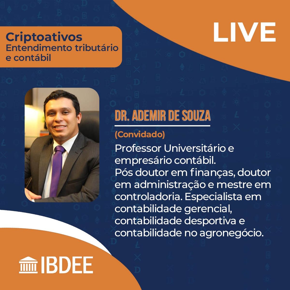 Live realizada pela Comissão de Direito Tributário e Contabilidade do IBDEE teve como tema: Criptoativos Entendimento Tributário e Contábil. O evento contou com a presença do Sérvulo Mendonça, César Carneiro, André Lemos e Dr. Ademir de Souza.